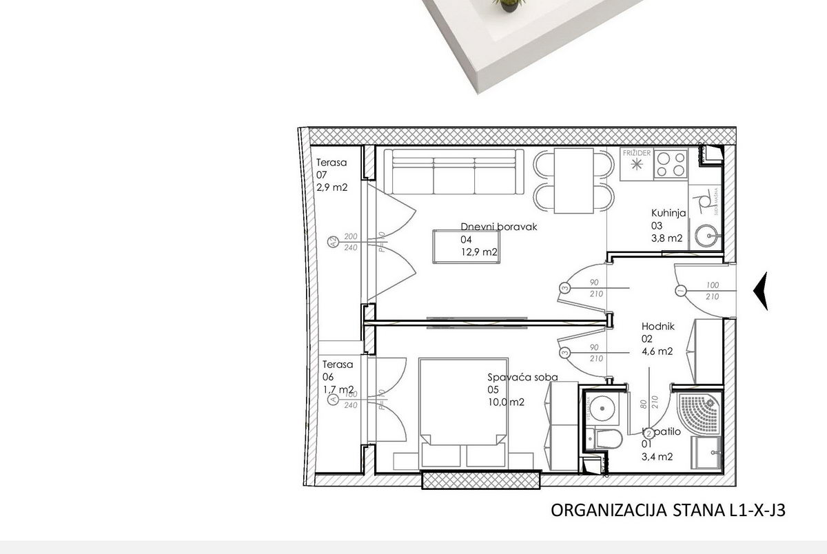 Jednosoban stan 54.9 m2